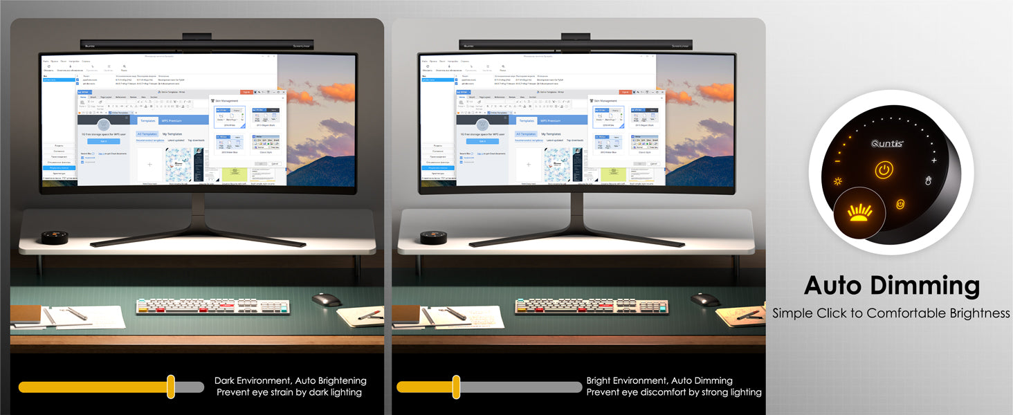 Replacing Traditional Office Lamps – Enhancing Visual Experience: The Quntis light bar provides better and more professional lighting with a timer function to remind you to take breaks, making it ideal for students, graphic designers, and office workers. For reading, gaming, and extended screen use, the Quntis light bar is the perfect lighting for a comfortable experience.