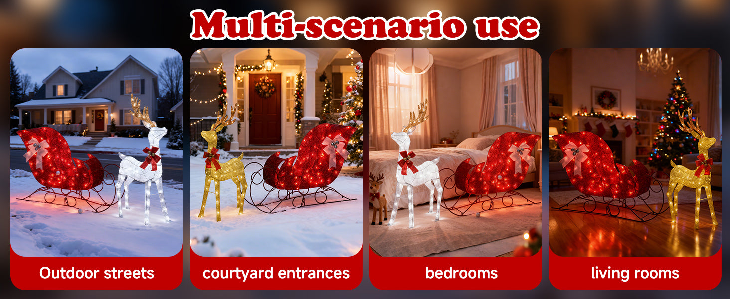 This classic Christmas Sleigh and Reindeer design seamlessly fits all holiday themes. Ideal for Outdoor lawns, patios, retail windows, or festive Indoor displays—perfect for every Christmas Decoration scene.