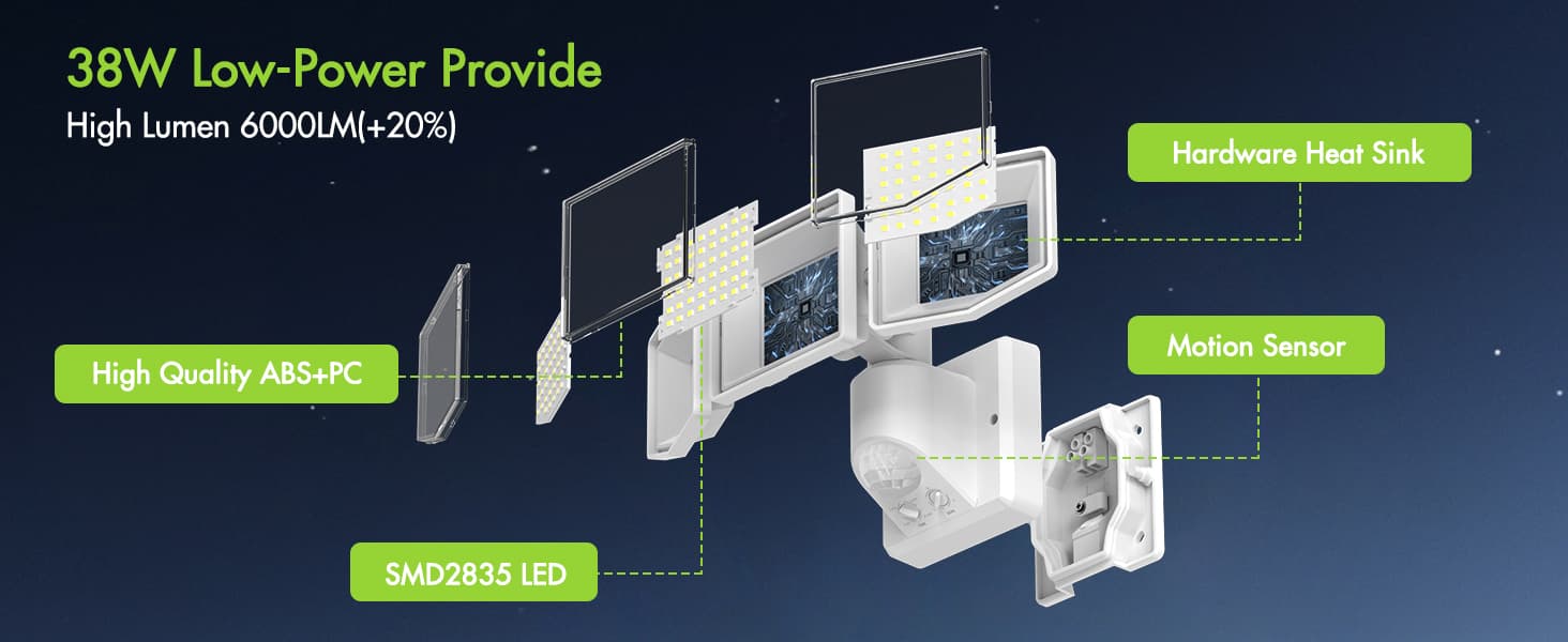 - 【Energy Saving & LED Super Brightness】Thank to the 128 high-quality LED beads, which produce 6000LM high light output with only 38W low power. 6500K color temperature daylight equivalent to 630 watts incandescent bulb, can help you save more than 88% on electricity bills. Wall-mounted or eaves-mounted are ok, the light sensor can accurately switch lights automatically from dusk to dawn. Each LED bead has an independent heat sink at the bottom which can ensure the best heat dissipation.
