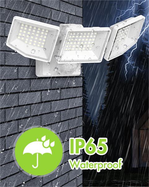 - 【PIR Motion Inductor & Wide Angle Illumination】Our motion sensor LED flood light can be triggered by moving humans, animals or cars detects 160° wide lighting angle, up to 49 feet sensing distance, and max 10 mins Illuminate time. Its adjustable 3 heads and always-on light mode can also be used as super bright patio light, providing ample lighting for outside parties. Ideal for illuminating gardens, courtyards, lawns, garages, driveways, porches, entrances, pathways, stairs, and more.