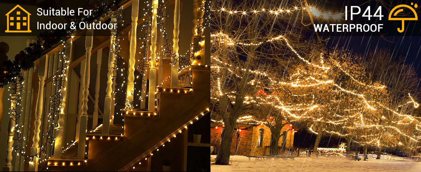 - 【IP44 WATERPROOF RANK】High waterproof rank makes it can withstand heavy rain and snow, The string lights are made of high-quality flexible copper wire and wrapped with high-quality PVC material that can be easily wrapped around the items you want to decorate. Arrange LED strings lights according to different scenes, giving full play to your imagination and creativity.