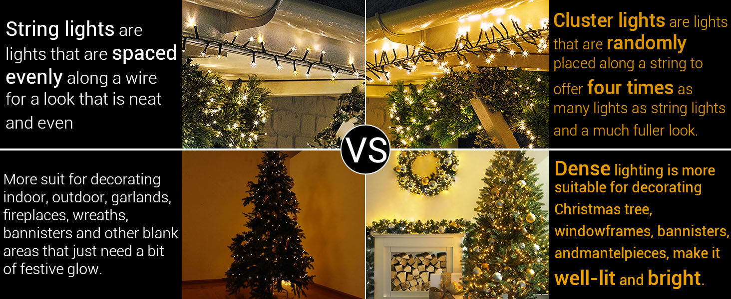 Warmwhite- [BEAUTIFUL DECOR LIGHTS] UL certificated Cluster Christmas twinkle lights with 25ft long braided dark black wires, and each 0.03ft space distributes a super bright F5 LED bead, denser led beads making the lights 4 times brighter than other Led cluster lights. these lights offer a clustered appearance for a fuller look which are perfect for a Christmas tree, banisters, window frames or other areas in your home.