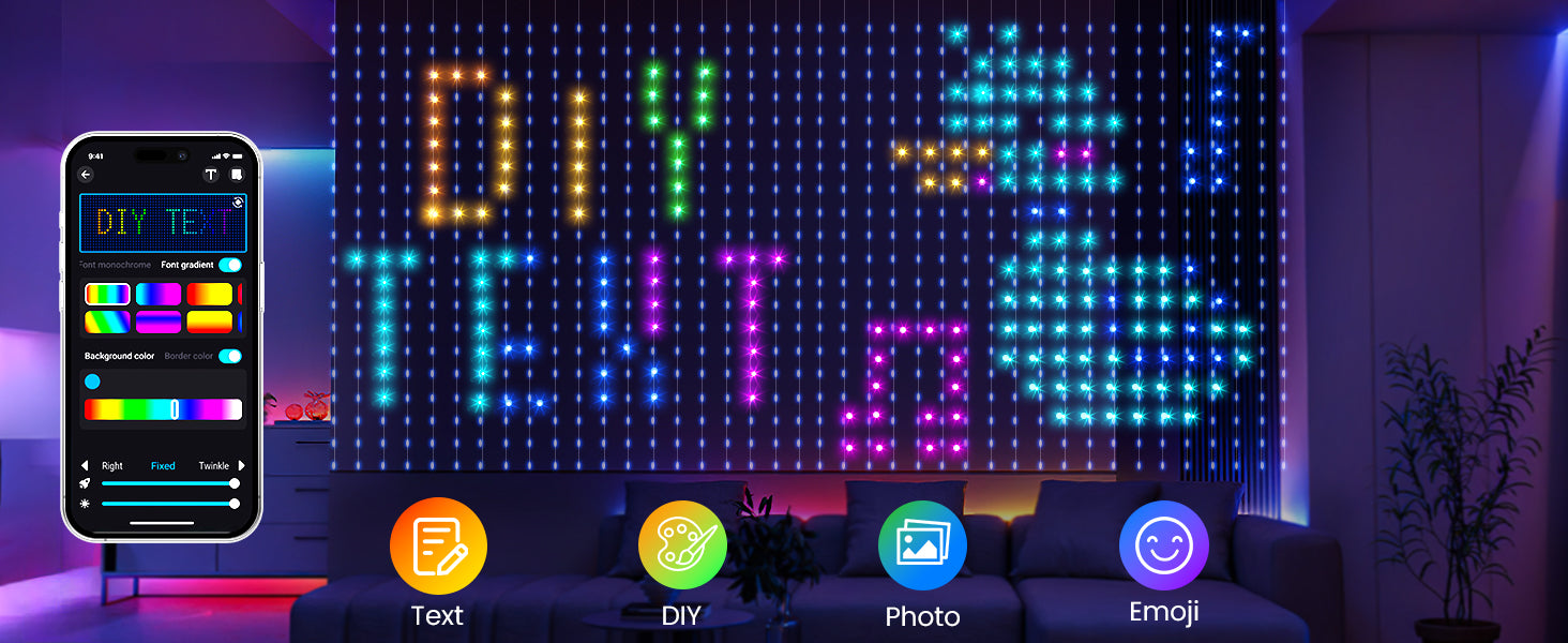 With Quntis RGB Curtain Lights, you can easily customize the perfect light display using the mobile app. Choose your favorite colors, patterns, and effects to match any occasion. Whether it's for Christmas or a party, control everything from your phone for ultimate convenience and creativity