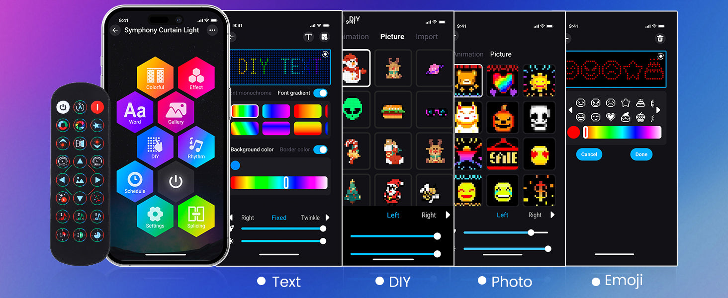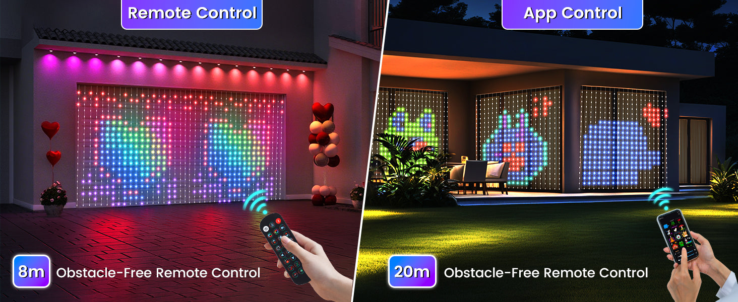 Quntis RGB Curtain Lights offer two convenient control options: a remote control and a mobile app. Whether you prefer the ease of a remote or the flexibility of controlling your lights from your phone, these lights give you the ultimate customization experience for any occasion.