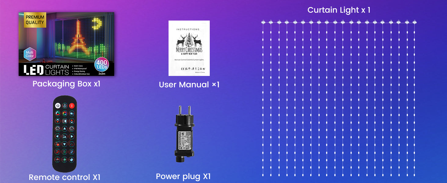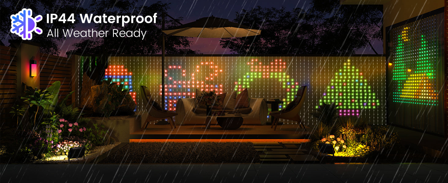Quntis RGB Curtain Lights are rated IP44 waterproof, making them perfect for both indoor and outdoor use. Whether you’re decorating for a holiday party or a garden event, these lights will withstand the elements, ensuring your décor shines through rain or shine.