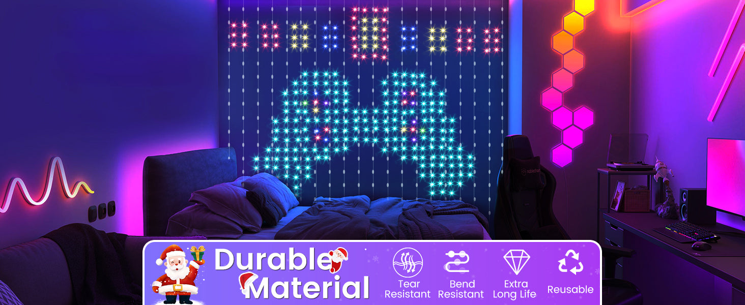 Quntis RGB Customizable Christmas Curtain Lights