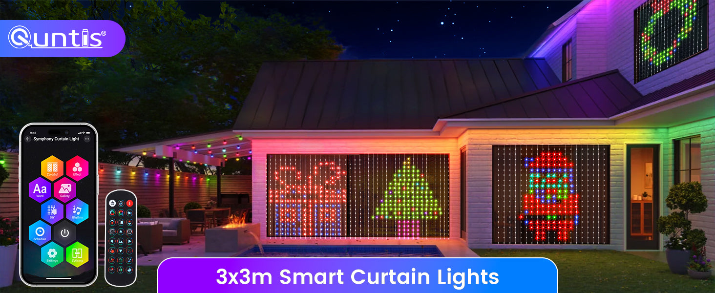 Transform your space with Quntis RGB Customizable Christmas Curtain Lights. Easily adjust the colors and effects to match any holiday or party vibe. With smart control via app or remote, create the perfect festive atmosphere. Ideal for windows, walls, or any decorative setup, these lights bring joy to every corner.