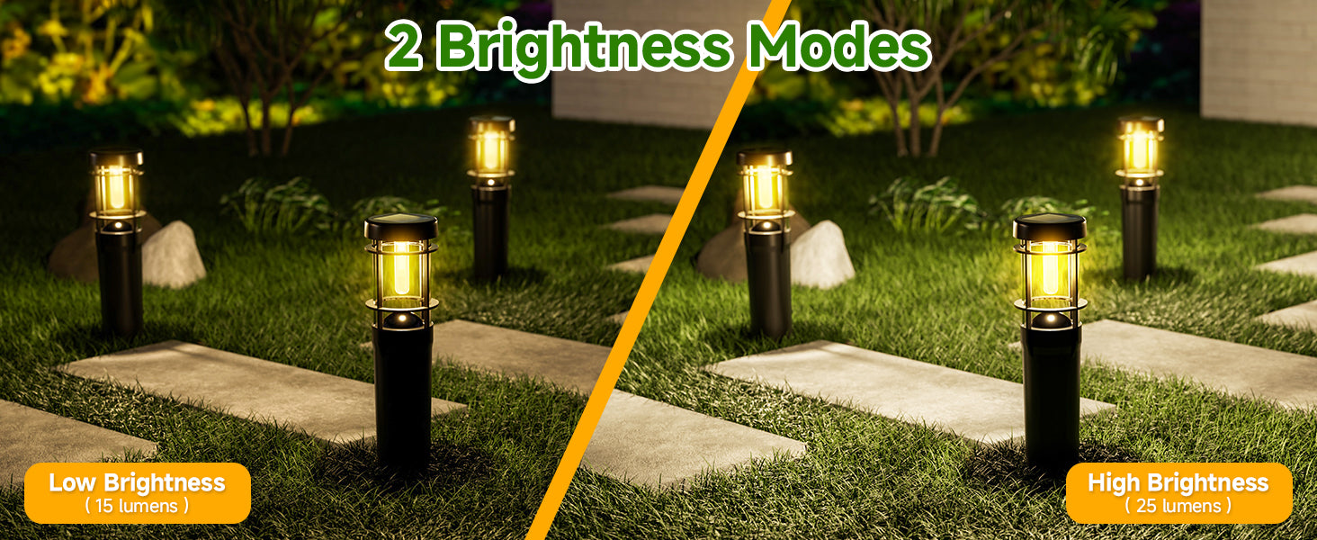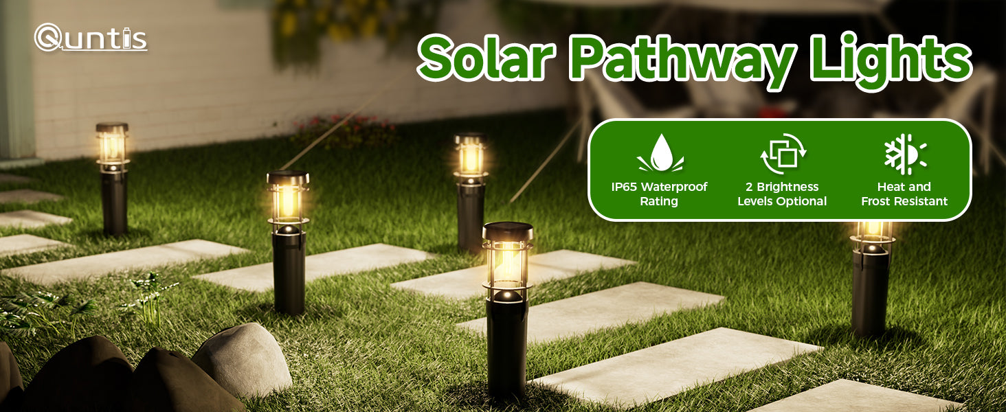 lluminate your outdoor space with Quntis Solar Pathway Stake Lights, featuring two brightness modes to suit every occasion. Choose the softer glow for a cozy, ambient atmosphere, or switch to the brighter setting for enhanced visibility and safety along walkways and gardens. Powered by solar energy, these eco-friendly lights automatically charge during the day and turn on at night, adding charm and functionality to your yard without extra electricity costs.