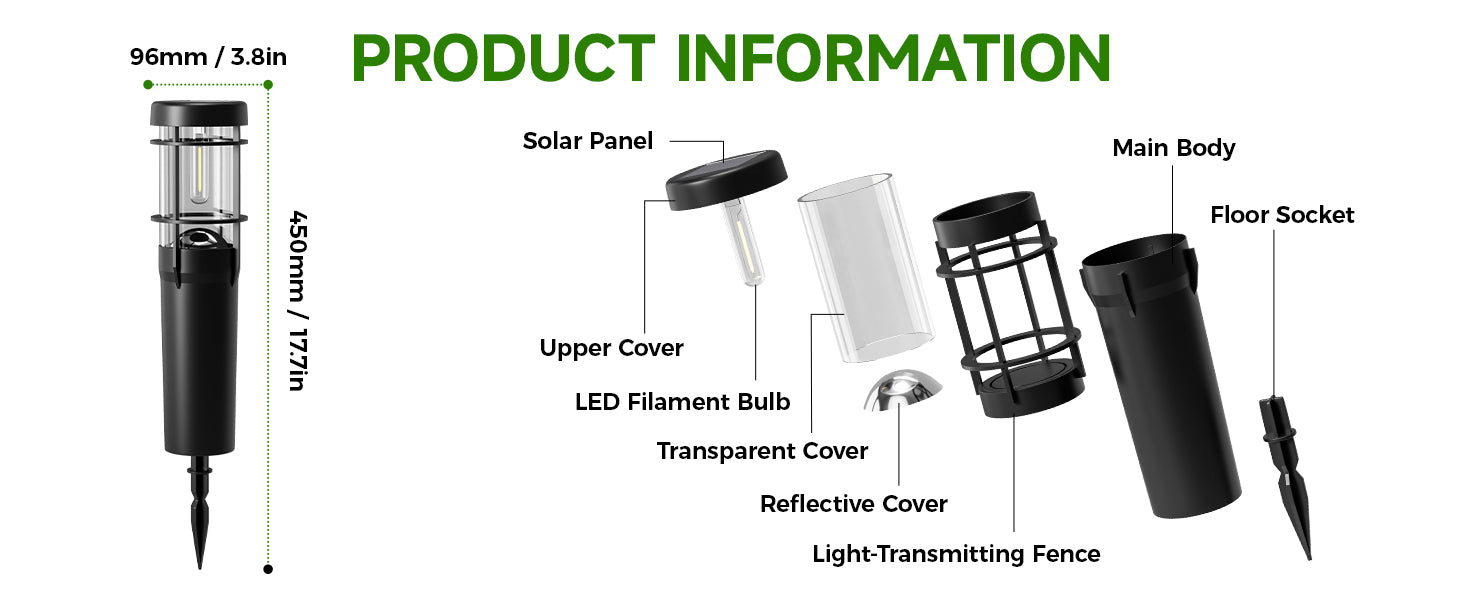 Auto On/Off Solar Pathway Lights: Our solar-powered outdoor lights automatically turn on in low light conditions and turn off in bright environments. Designed to illuminate outdoor spaces and walkways, these lights provide a warm and bright path home and add a decorative touch to your yard.