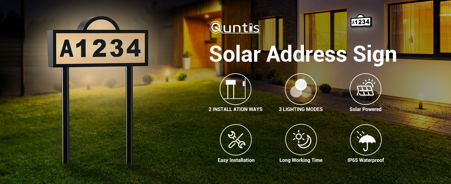Quntis solar address sign adopts a design that can be hung on the wall or inserted on the ground, and you can choose your preferred way and height according to your mood or surrounding environment.