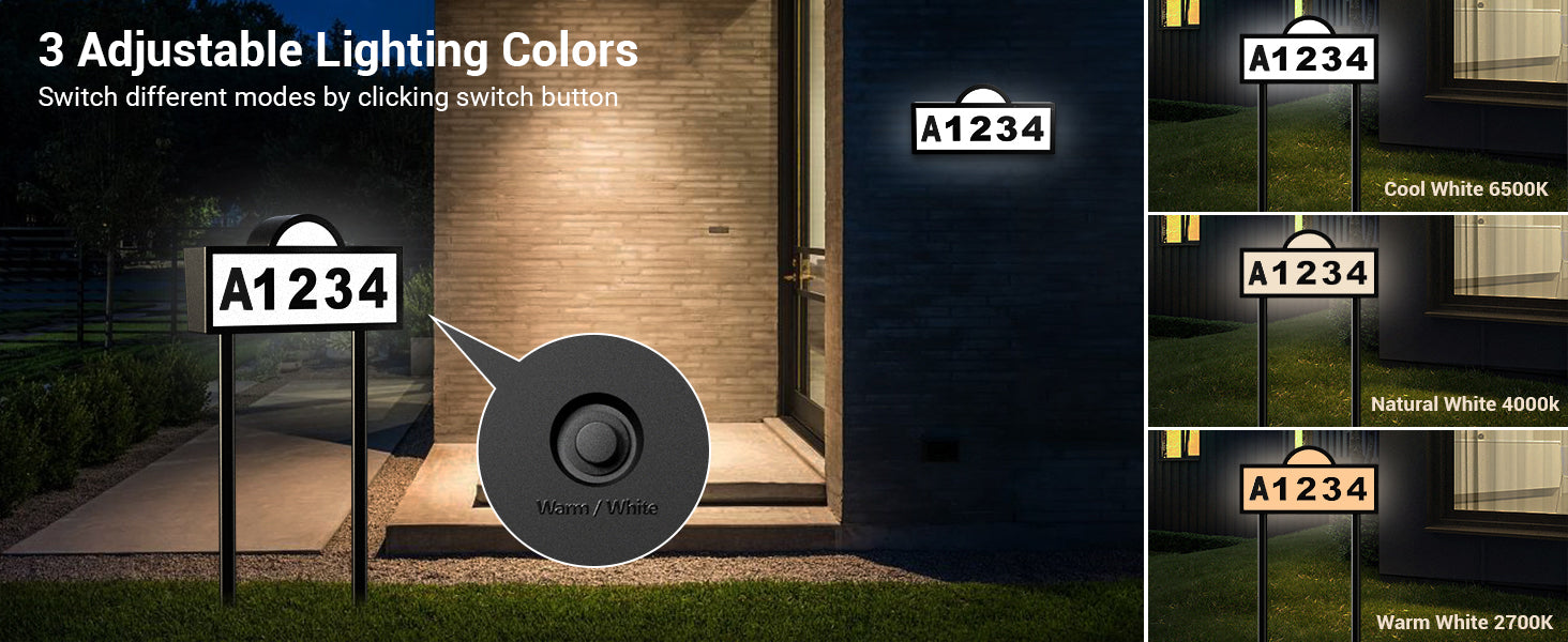 - 【3 Color Light & Pretty Gift for You】This solar house numbers has 3 lighting modes: 2700K Warm Light & 6500k Cold White & 4000K Daylight White. You can press the button to switch the lighting modes, and easily select different color lights to meet different requirements. It's not only a pretty decoration for your house, but also a cold light design for easy reading, a warm light design for a homely feeling, and a daylight design for eye protection. How an ideal gift for family or friends.
