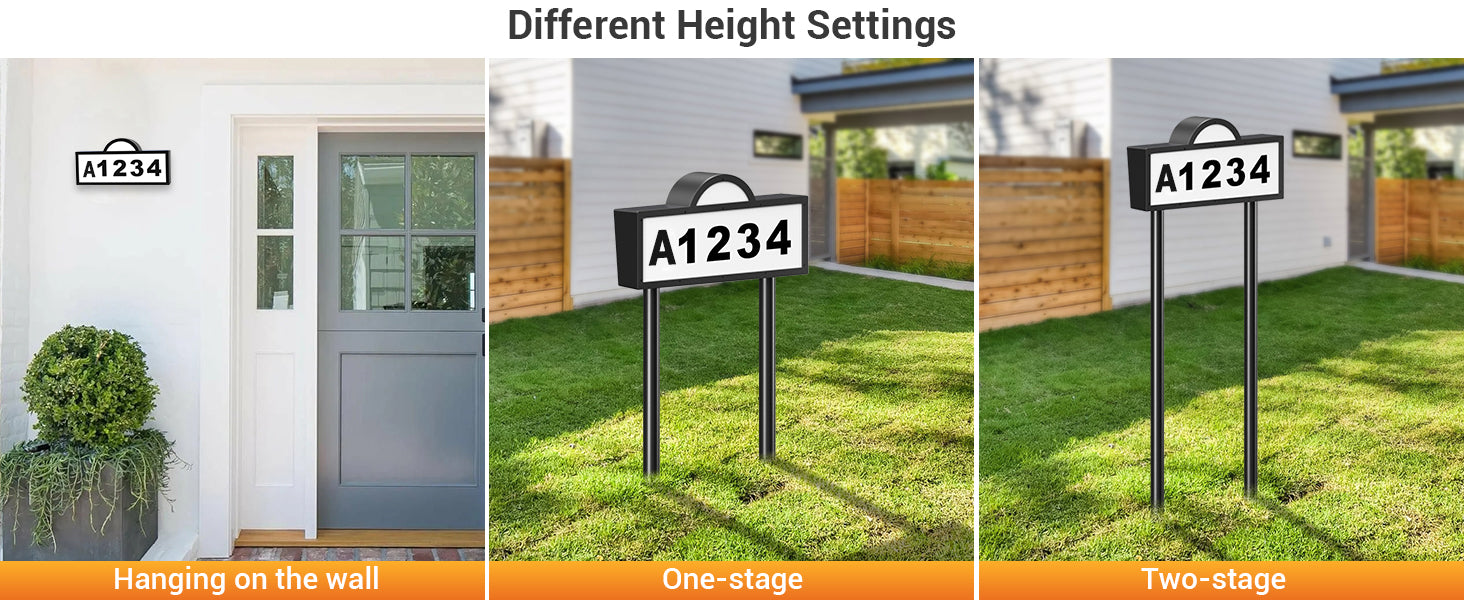- 【2 in 1 Design & DIY Install】Our solar house number design allows for both wall mounting and ground insertion. Just 3 min to install, either use screws to mount it on a wall or stakes to push it into the ground, making it versatile for use. Our double-pole installation provides greater stability than other single pipes, and each unit comes with two extendable ground rods, allowing for greater flexibility in installation height to meet different needs.