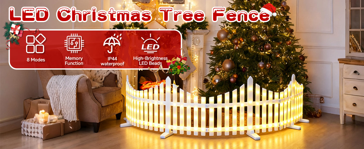 Fitas de Natal à Prova de Água: Com uma classificação de impermeabilidade IP44, estas luzes de Natal decorativas são projetadas para resistir à chuva e a várias condições meteorológicas durante todo o ano. Esta iluminação de cerca de Natal em LED durável é ideal para uso ao ar livre, decorando o seu jardim, caminhos, pátios, relvados, quintais e paisagismo. Desfrute do que há de mais recente em decoração de luzes de Natal ao ar livre com esta deslumbrante cerca iluminada.