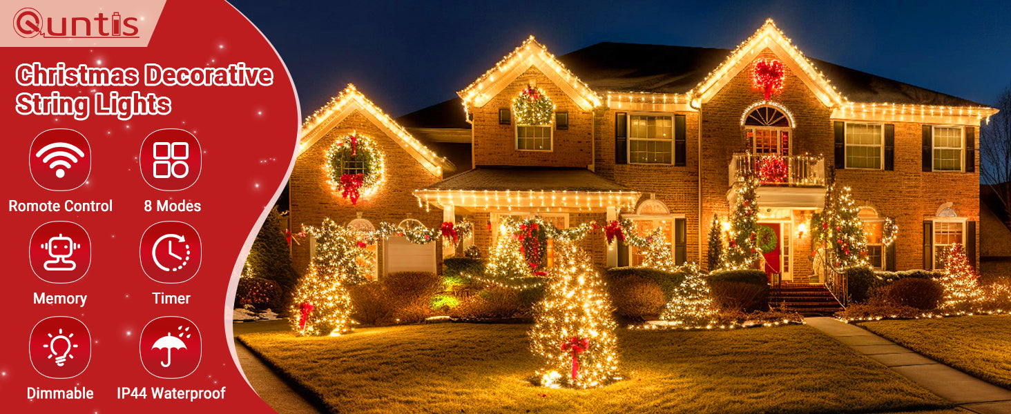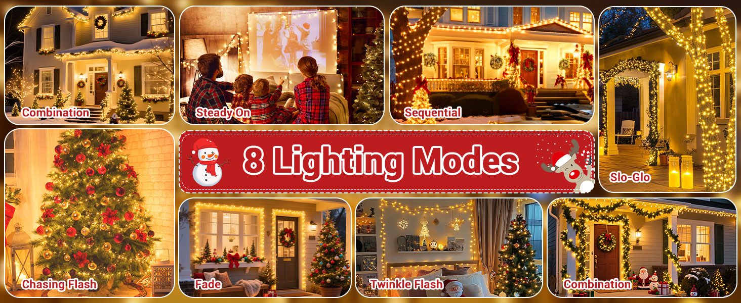 [Waterproof & Durable]: With an IP44 waterproof rating, these lights are built to withstand various weather conditions, making them perfect for outdoor Christmas decorations and year-round use.