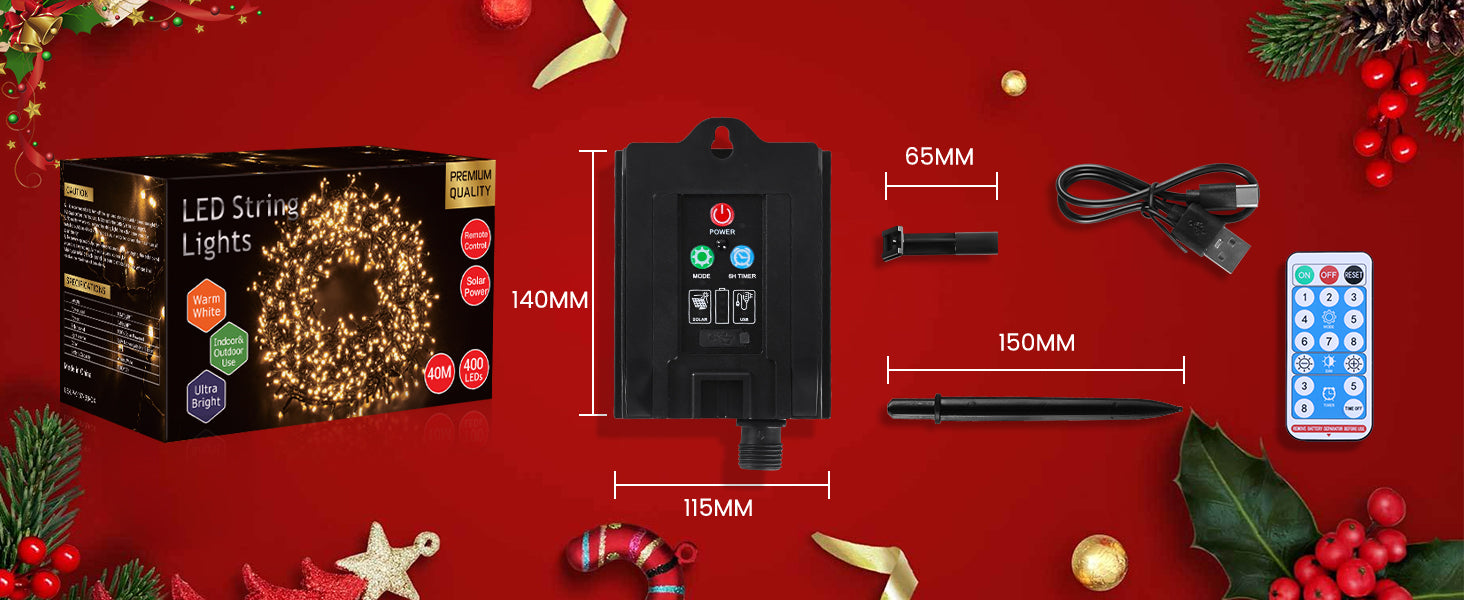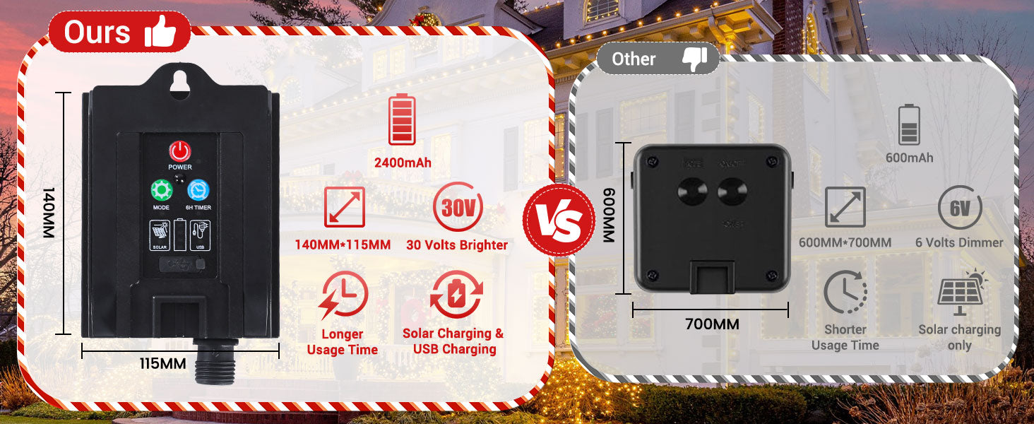 [Solar Powered & Energy Efficient]: Equipped with a 5V 500mA solar panel and a 2400mAh lithium battery, this light string charges during the day and illuminates your space at night, saving on energy costs.