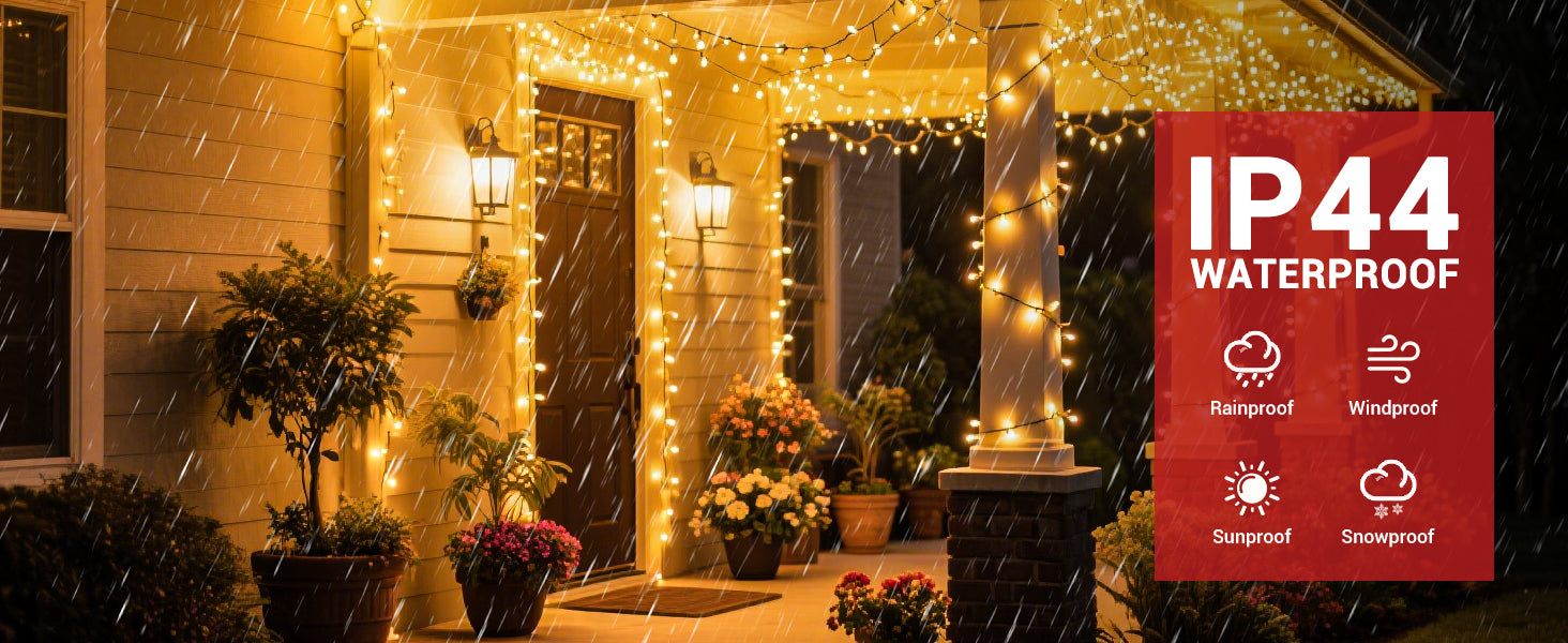 Built with an IP44 waterproof rating, these lights are designed to withstand rain, snow, and outdoor elements, ensuring reliable performance in all weather conditions. Perfect for both indoor and outdoor use, they are ideal for year-round decorations and outdoor festivities.