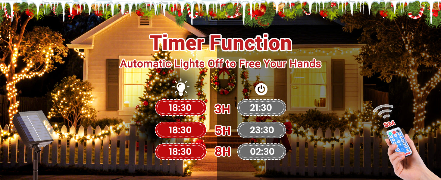These lights feature a built-in timer function, allowing you to automatically turn the lights on and off at set intervals. Choose from multiple timing options to save energy and ensure your lights operate exactly when you need them, making your decorating effortless.