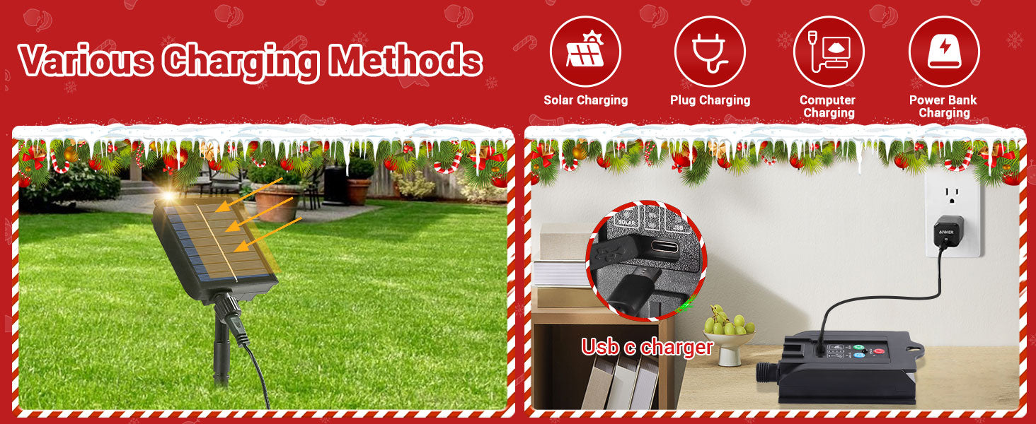 Enjoy the flexibility of two charging options with these lights – solar power for eco-friendly outdoor use and USB charging for quick and reliable power indoors. Whether you’re outdoors in the sun or indoors during cloudy days, you can always keep your lights glowing bright.