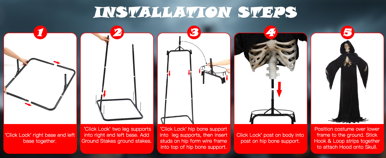 - Quick Setup & Storage - Includes clear, step-by-step instructions—assemble grim reaper outdoor Halloween decor in just 3 minutes! After Halloween, easily disassemble and store it for next year's haunting. The Halloween skeleton also come with a demo button. Simply press "Try me" to instantly immerse yourself in the terrifying atmosphere. The removable battery compartment allows you to easily disconnect the power to avoid accidental scares. This Grim Reaper is sure to amaze all your neighbors.