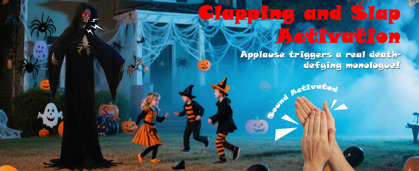 Bring your Halloween décor to life with this interactive feature! When guests clap or slap, it triggers a heart-stopping, death-defying monologue that instantly grabs attention. Perfect for haunted houses, parties, or yard displays, this thrilling interactive experience adds suspense, excitement, and a touch of theatrical horror to your Halloween setup.